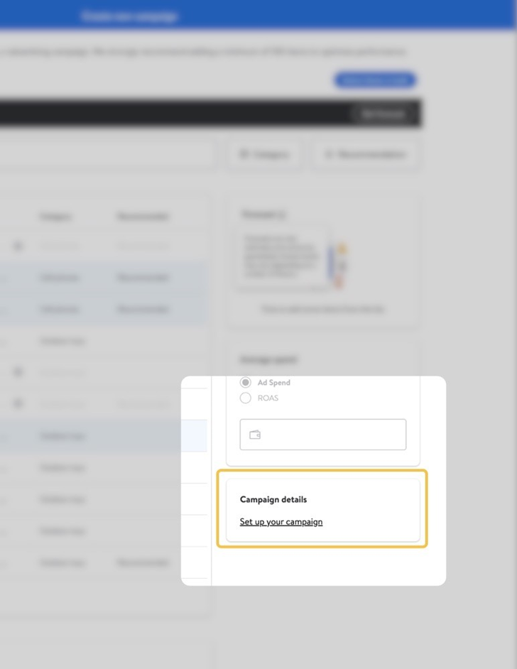 在计算广告支出及/或ROAS后,您将可以选择Campaign details(广告活动详情)标题下的Set up your campaign(设置广告活动)。