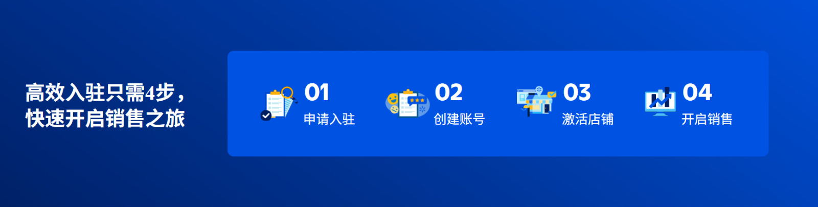 快速完成从入驻到开卖的全过程,让卖家,更快进入经营阶段。