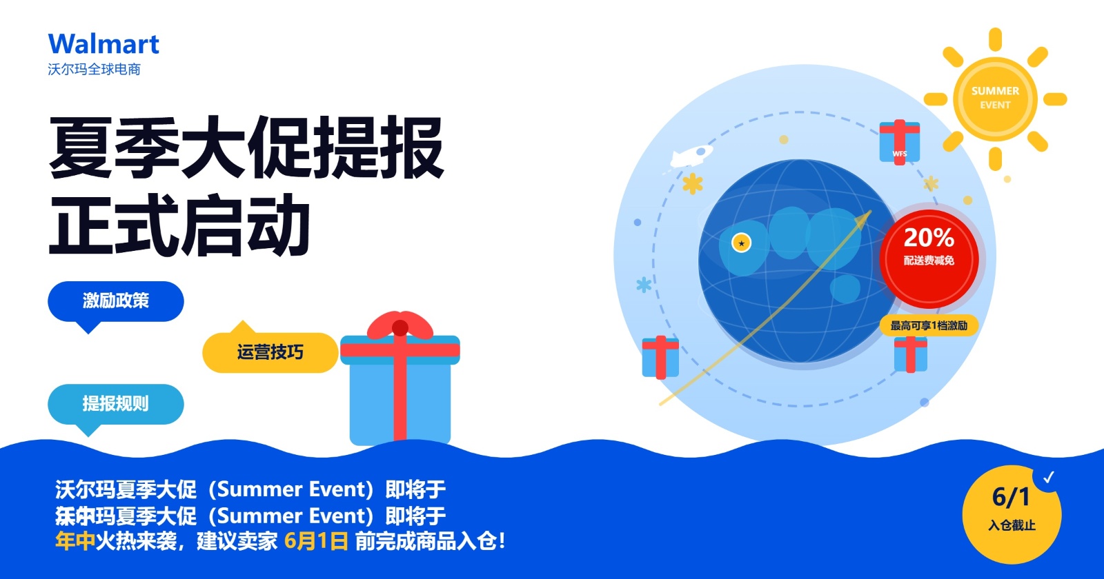 沃尔玛夏季大促(Summer Event)即将于年中火热来袭,建议各位卖家于6月1日前完成商品入仓!