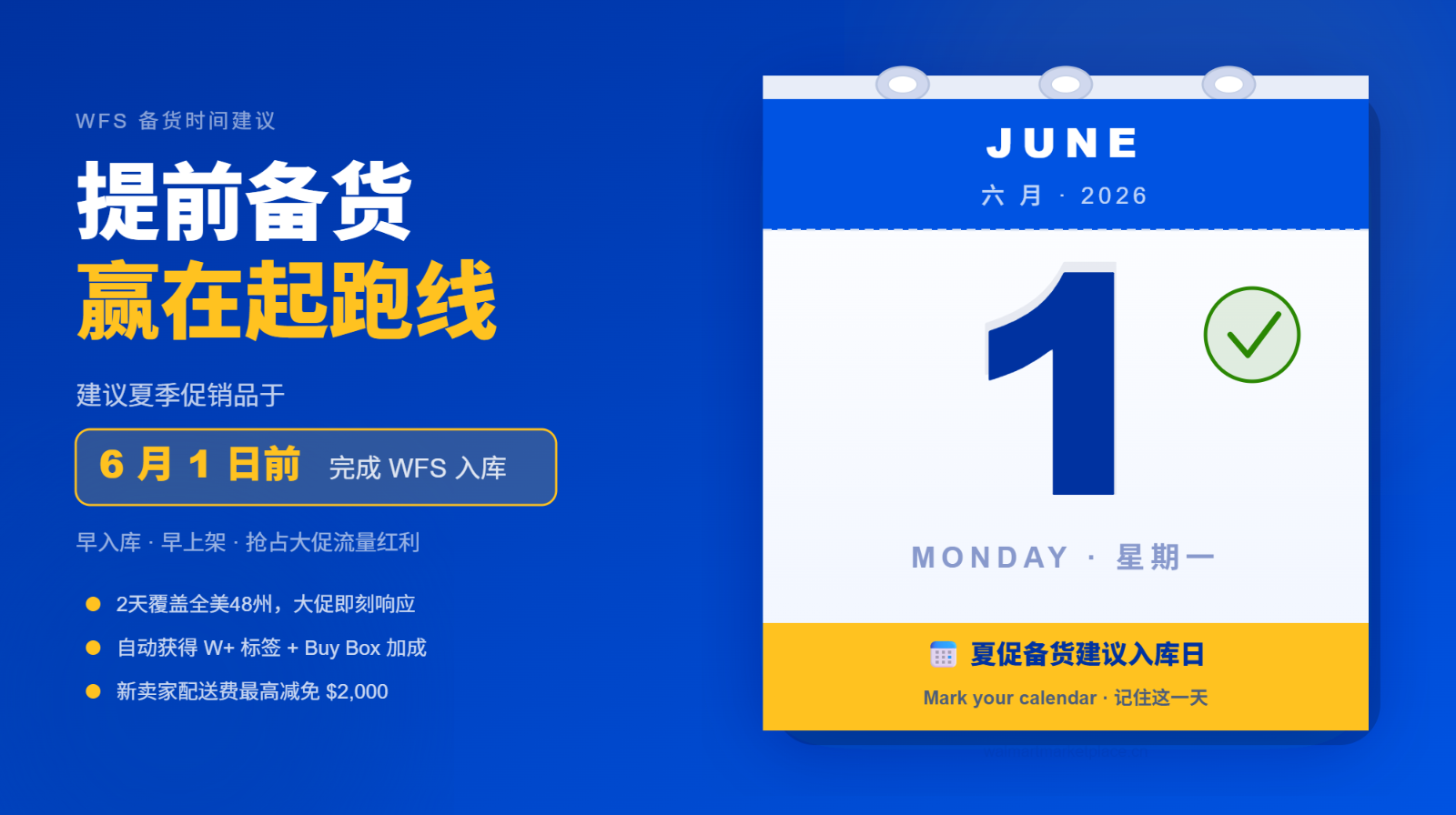 我们建议您,将夏季促销品在6月1日前备货入WFS。